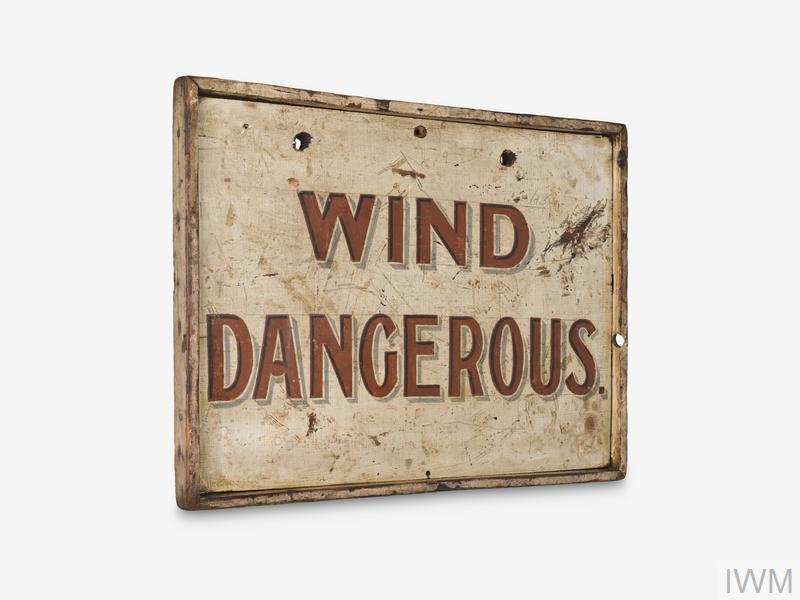 Neuve-Église est un village situé à la limite sud du saillant d’Ypres. Des panneaux de ce type étaient souvent installés dans les tranchées lors des attaques au gaz, lorsque le vent était favorable (généralement de l’est).