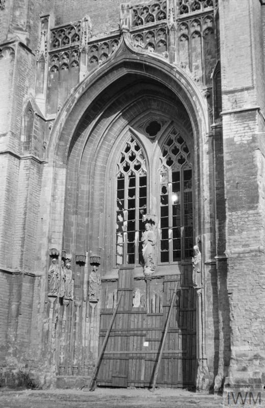 THE BRITISH EXPEDITIONARY FORCE ON THE WESTERN FRONT, 1914-1915 (Q 61636) The doors of the Cathedral at Ypres, February 1915. Copyright: © IWM. Original Source: http://www.iwm.org.uk/collections/item/object/205026944