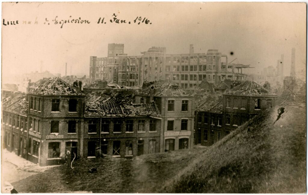 On apprend par ceux qui sont allés à Lille aujourd’hui que l’explosion y a été terrible. Elle s’est produite au parc des pionniers, à la porte de Valenciennes. Le quartier est détruit. On compte à ce stade 94 civils tués et une trentaine de blessés graves.