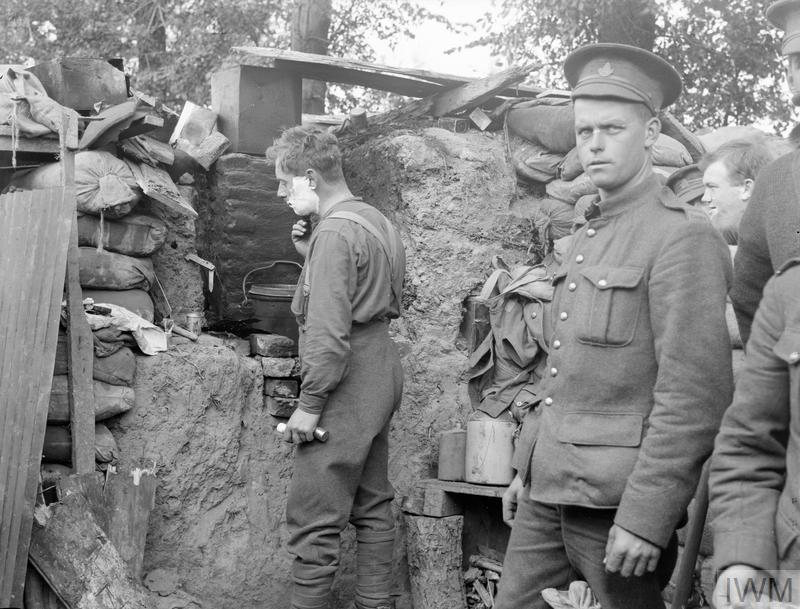 Trois très longs trams, chargés à bloc de soldats armés, s’en vont pour le front dans le brouillard, via Bonaparte (Gaie Perche). Cortège sinistre : pas de lumière, seule une lanterne rouge se balance en queue de wagon. Dans tout cela, un mélange de cavaliers, de fantassins, d’ordonnances avec des malles et des couvertures, des lampes de poche qui s’allument brusquement ici et là, et les cris aigus de la locomotive de tête du premier tram échoué à Comines, auxquels répondent les deux autres.